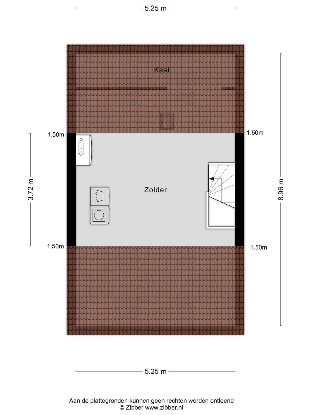 Tweede verdieping: middels een vaste trap te bereiken ruime, open zolderetage met dakraam en een aansluiting voor de wasmachine en opstelling van de CV-ketel. Hier zijn nog mogelijkheden om het naar eigen inzicht verder in te delen.